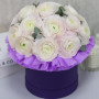 17 белых ранункулюсов в шляпной коробке в Ефремове